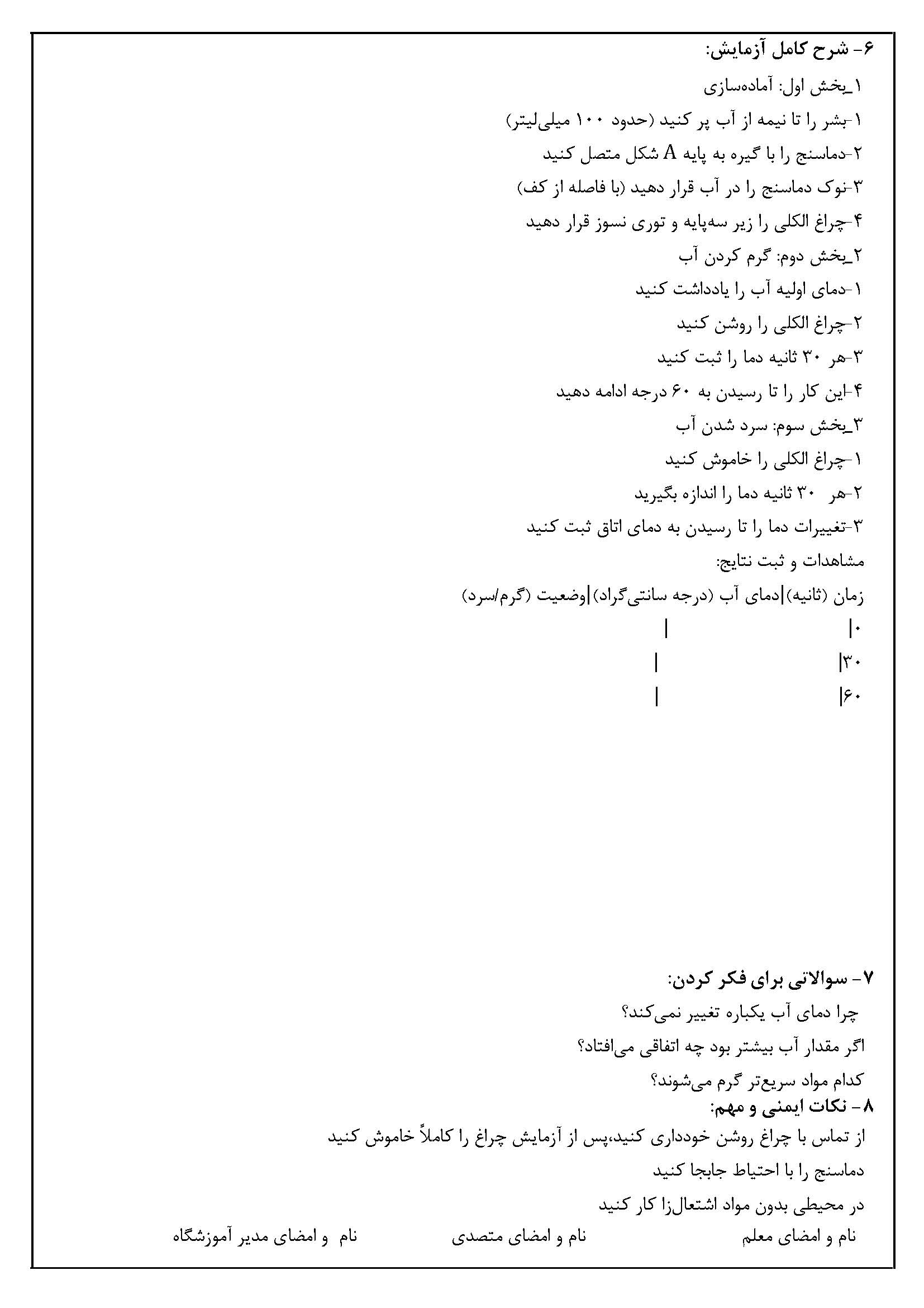 برای مشاهده فهرست آزمایش های عملی علوم به این صفحه مراجعه کنید.