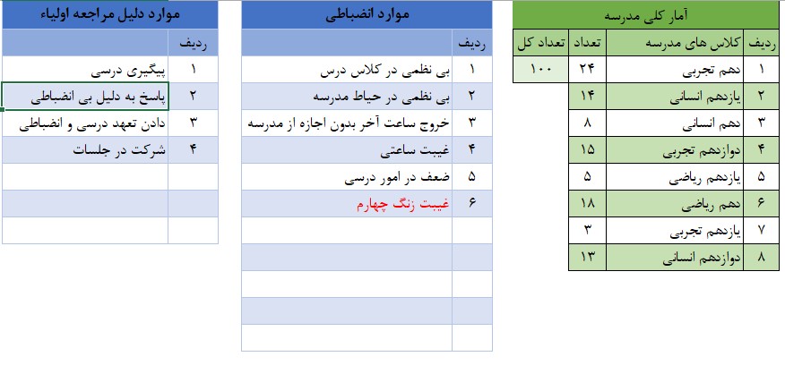 فقط با کلیک ماوس روی دانش آموز مورد نظر و یک دکمه هر مورد انضباطی و یا ارزشیابی را ثبت و ذخیره کنید.