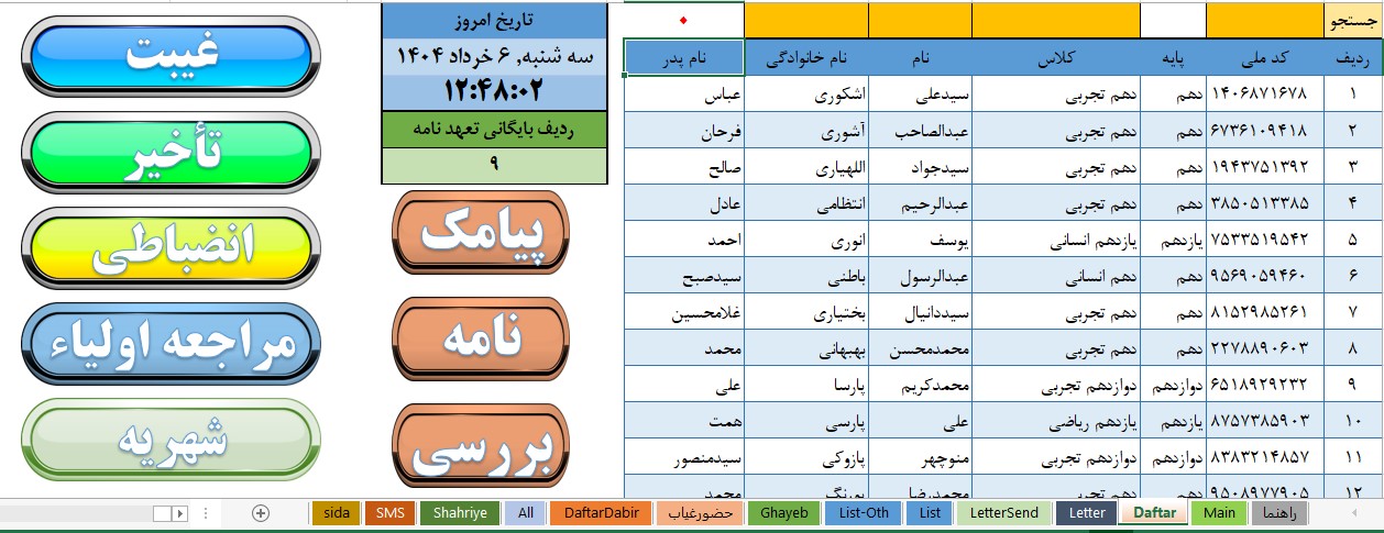 همچنین برای ثبت هر مورد نیازی به حفظ کردن کد ملی و یا تمام مشخصات دانش آموزان نیست و کافی است فقط قسمتی از آن را به برنامه بدهید تا اطلاعات آن برای شما نمایش داده شود.