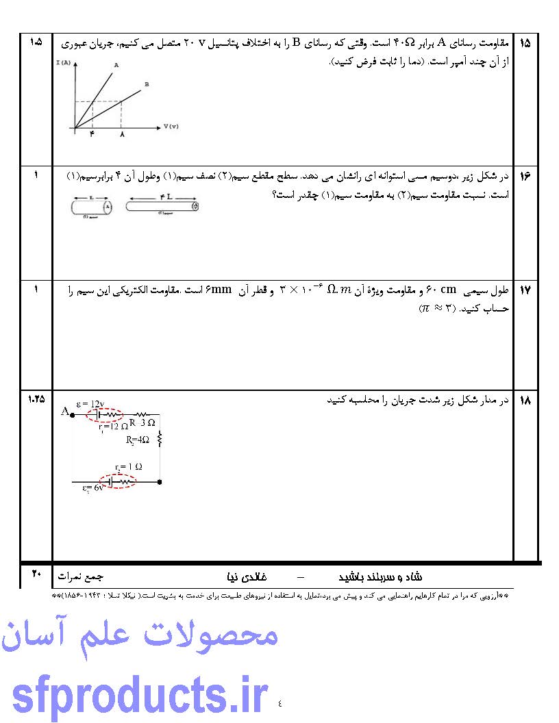 نمونه سوال امتحان نوبت اول فیزیک یازدهم تجربی برای دی ماه شامل 4 صفحه سوال آماده و قابل ویرایش در برنامه آفیس ورد می باشد با دانلود رایگان PDF