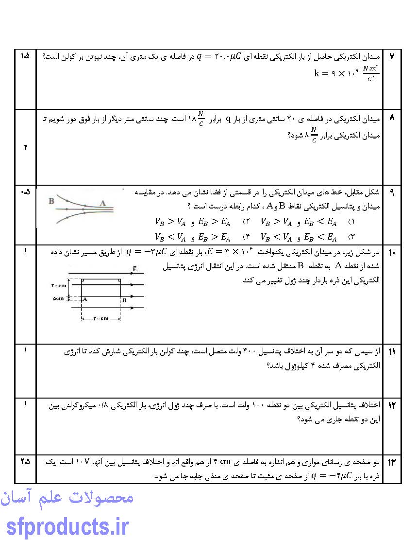 برای دیدن دیگر نمونه سوالات مرتبط با فیزیک یازدهم این صفحه را ببینید.